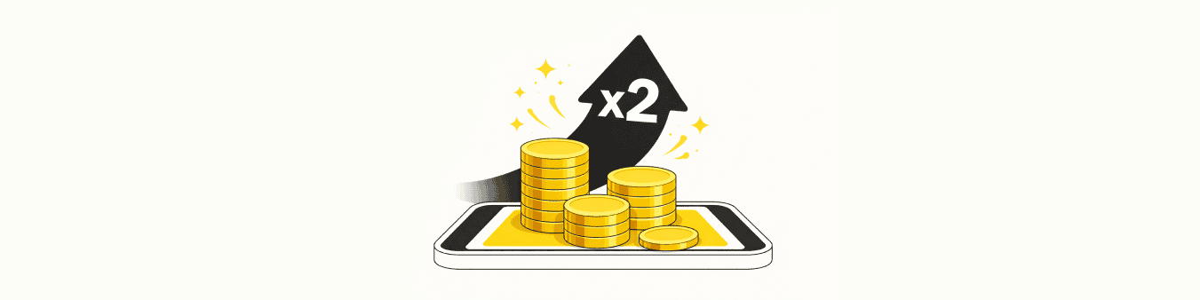 За підсумками календарного місяця участі в акції, весь кешбек, нарахований за банківськими категоріями, буде подвоєно. Бонусні кошти зараховуються окремо, до 10 числа наступного місяця.Максимальний розмір бонусу, який може отримати учасник протягом одного календарного місяця в період дії акції, становить до 1 200 Бонусів. Якщо розрахована сума бонусів менша ніж 50 Бонусів, нарахування не здійснюється. Період проведення акції: з 1 лютого по 30 квітня 2026 року.